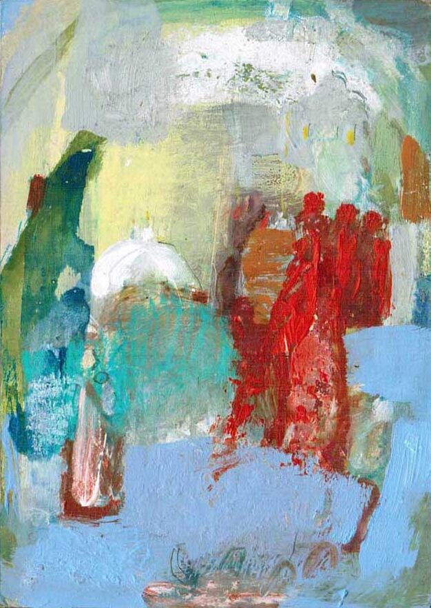 Doch wenn ich mich hineinbegebe in ein Malen, das mich mehr und mehr aus dem Zustand des Nicht-Wissens heraus „malen“ lässt (eher ist es ein Geschehen-lassen) – dann ereignet sich etwas, das aus der Schicht kommt, wo nicht mehr „ich“ male.