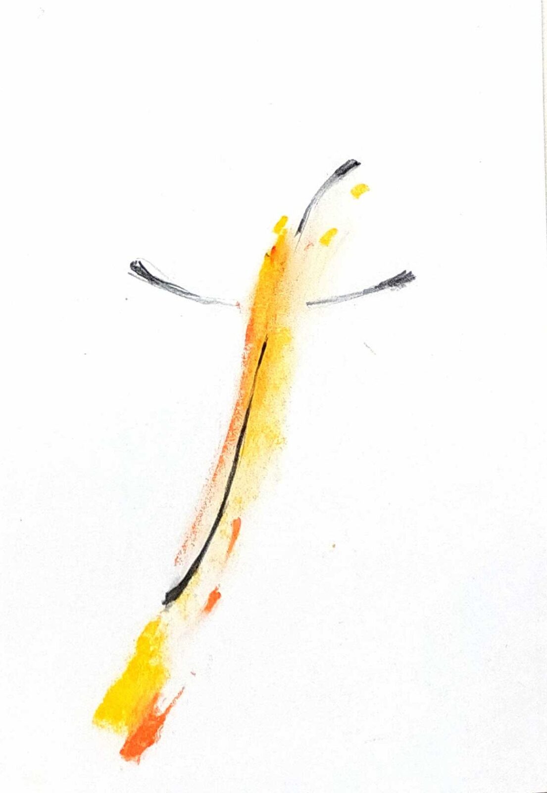 Das Gelernte, Erinnerte, Erdachte – vielleicht auch der Ausdruck, die Spur des eigenen Inneren… – das ist oft ERSTmal NOT-wendig. Es liefert auf dem Papier das Material und bringt auch mich langsam in den Zustand, in dem sich dann der Impuls, der nicht mehr „meiner“ ist, ereignen kann.